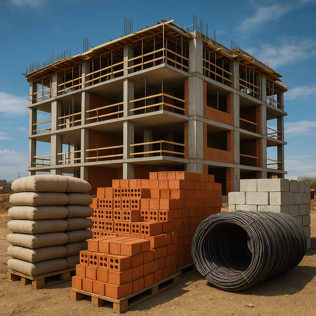 Clay bricks, concrete blocks, and interlock tiles for reliable masonry and paving works.